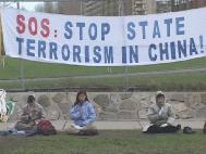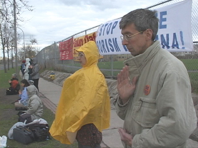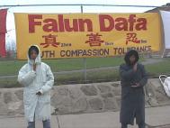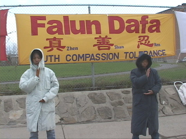 纷纷赶到的学员,静静地伴着音乐炼功,并每半个小时发正念一次,铲除破坏大法的邪恶。