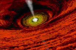 在物理界权威杂志《物理评论快报》今年3月11日的期刊上,登载了一篇由欧洲物理学家艾姆帕朗和李尔对于黑洞的最新理论研究。他们提出在5维时空中,能够暗藏飞速旋转的形如面包圈的“黑环”。这是第一例非球形的黑洞。他们的研究指出,如果黑环旋转得足够快,其强大的离心力可以平衡其巨大的自吸引力,从而使黑环能够稳定存在。过去黑洞被认为是验证和发展多维时空理论的钥匙,而黑环的理论发现更加强了这一认识:当去掉对物体的4维时空的限制时,它们将遵从不同的运动规律。