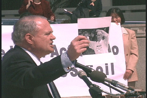 我们来到这里,是因为我们相信正义和真理。一群普普通通的人状告政府,在历史上从没有过先例。在目前的中国,有多少相信“真善忍”的无辜百姓被抓,被据,被判刑,被残忍的杀害。在海内外,又有多少善良的人们被欺世的谎言和极权者的淫威所蒙蔽。在一些时候,一些地方,或许谎言和淫威可以逞凶一时。但是,我们相信正义和真理终将胜利。历史将成为我们的见证, 见证“真善忍”赋予我们的力量。
