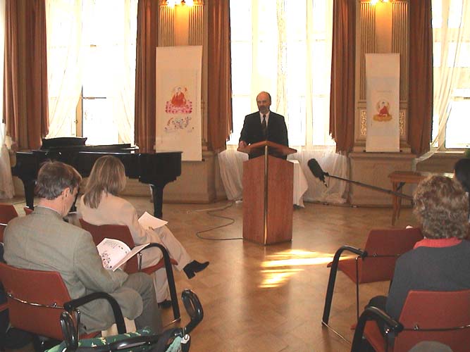 海德堡大学汉学系著名教授瓦格纳先生也到场作了长篇演讲。他从中国艺术讲到中国现政府对各种信仰的迫害,讲到中国法轮功学员的和平境界,最后他说,重要的是通过中国以外的国际力量,采取各种渠道来敦促中国政府停止迫害。