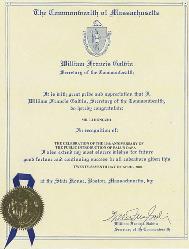 我,威廉.弗朗西斯.阁尔丰,麻州州务卿,非常荣幸地特此祝贺李洪志先生。