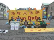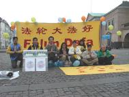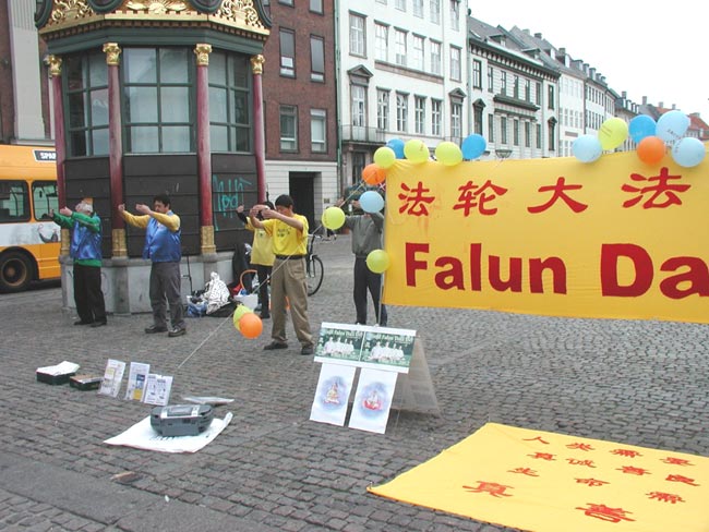图片报道:丹麦大法弟子于5月12日在哥本哈根市中心庆祝世界法轮大法日