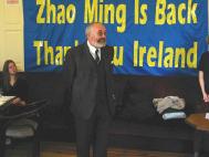 最后三圣大学研究生会主席、“赵明之友”发起人之一伊丽莎白.德路小姐心情激动地作了总结发言,感谢各界来参加庆祝答谢会的人士,感谢各界曾帮助营救赵明的人士,特别提到三圣大学第一次组织营救赵明抗议活动的原研究生会主席里查德.麦地根(Richard Madigan)及赵明的法轮功同修们。德路小姐最后宣布“法轮功之友”在爱尔兰正式成立。