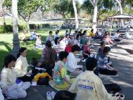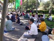 为庆祝这伟大的节日,南加州的法轮功学员们于五月十二日星期日,在华人聚集区的圣盖博市文森特鲁格公园举办游园会,设立中医免费检查、健康咨询摊位,免费教画、教书法摊位,备有饮料、小吃和小礼品,并表演歌舞、武术等精彩节目,由上午九点持续到下午三点。当地一些中文媒体到现场进行了采访。