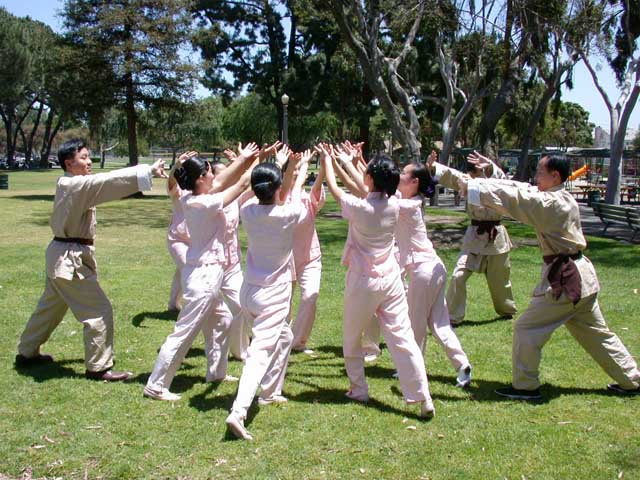 | 集体发正念 | 集体炼功 |