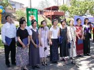 | 女声独唱《明思》 | 诗朗诵 | 等候观看歌舞表演的民众在仔细观看《正法之路》图片展 |