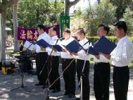 | 参加活动的西人学员 | 合唱《法轮大法好》 | 武术表演《除魔剑》 |