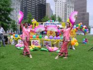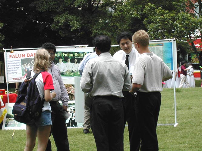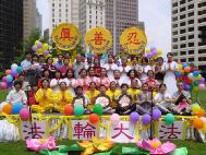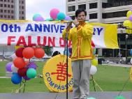侨界领袖赵增义先生非常同情和支持法轮功。他乘公共汽车来到市中心与学员们一起庆祝世界法轮大法日。他真诚地说:“我看到了你们修炼人真是慈悲祥和,我很感动。你们的师父太伟大了!祝你们师父生日快乐,全世界人都会快乐!”寥寥几句话道出了善良人们的心声。此次庆祝活动历时三小时,大法弟子们用短短的三天时间就排出了象样的歌舞表演,大法弟子们用大法赋予的智慧和大法弟子们一颗颗对大法坚如磐石的心,又一次向世人展示了大法的美好殊胜。节目的最后,台上台下的大法弟子和观众一起唱起了《法轮大法好》,庆祝活动在弟子们齐声向师父问生日好中圆满结束。