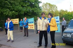 活动开始前,使馆上空聚集一大片乌云,大有风雨欲来之势。大法弟子坚定地齐发正念,铲除邪恶!约半个小时后乌云散去,天空晴朗。(英文版:https://www.clearwisdom.net/emh/articles/2002/5/16/22117.html)