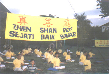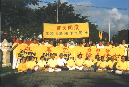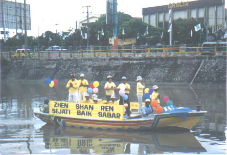 活动过程中,也遇到邪恶的干扰,由于大家正念强,邪恶没能达到目的,洪法庆祝活动照常进行。震撼最大的是拉横幅。因历史原因,在印尼已经有30年没有人敢公开在街上出现中文。当“法轮大法好”,“真善忍”,及一条7米长的“普天同庆法轮大法洪传十周年”的横幅在泗水最热闹的中心大街最显眼的高处展现,为期三天时,引起极大的震动。这是大法的威德,取得极好的社会效果。
