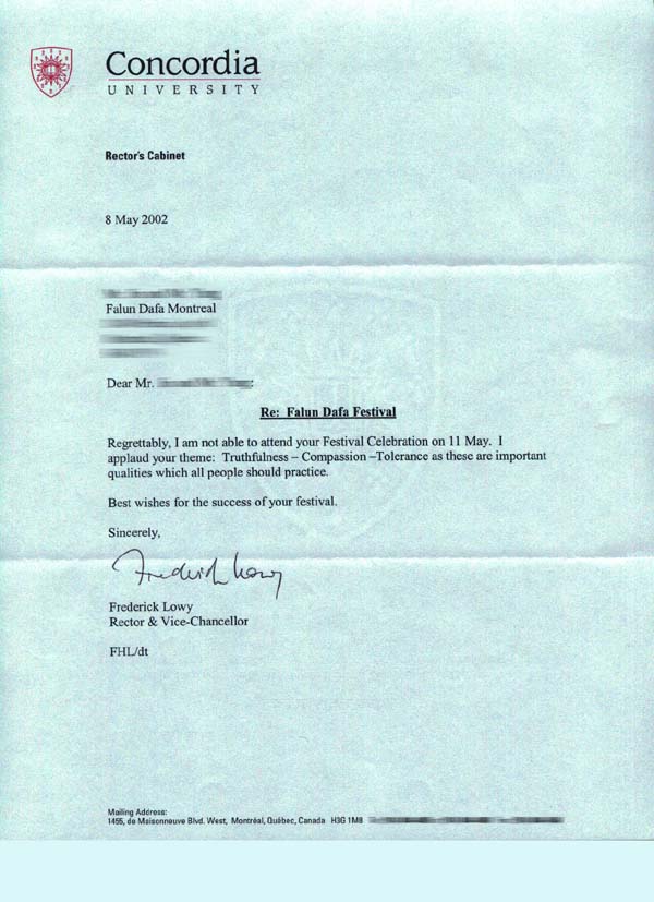 很遗憾我不能参加你们在5月11日举行的节日庆祝活动。我赞美你们的主题:真-善-忍,因为这是所有人都应该信奉的重要品质。