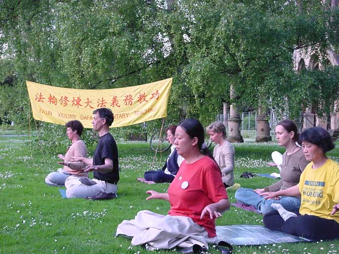 【明慧网2002年5月17日】2002年5月14日,斯图加特市(Stuttgart)附近的20名大法弟子聚集在一个公园庆祝大法洪传十周年。