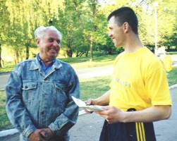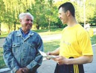 到我们庆祝大法日的场地来了一个喝酒稍微过量了一点的年轻人。他在和我们交流中执意想向我们证明我们的努力、我们的活动是没有任何用处的。他拦住过路人并进行了他的所谓的民意调查,想借此向我们证明,人们对我们、我们的展板和真相资料不感兴趣。结果呢,我们一点也没有从他所询问的那些善良人们口里听到批评的声音,而只是说:“每个人应该自由地去选择他想要的”,或是“我们现在如何告诉你我们对法轮功真相报纸的意见呢,如果我们还没有读过它呢?”等等。那个年轻人也没有从我们这里听到任何对他的抱怨和不满。最后他和我们道别前,又问了一位正在遛狗的上了年纪的老大爷,恰好老大爷也正在看我们的大法真相报纸。老大爷对他说:“你想知道,我如何看待这问题。好,咱们打开报纸,看那写着呢:不是宗教,不是商业,不参与政治,难道这不好吗?这炼功的都是好人,他们不喝酒,不抽烟,又不吸毒的,也不骂人,不欺负任何人。我们那里就有一个小伙子炼法轮功,他是非常好的人!”