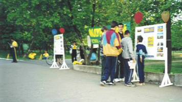 到我们的大法信息展板走来了一位女士,她询问我们这是什么。通过我们的讲解,她解决了一个好久无法解决的问题--如何在公园里维持秩序。她说,如果人的道德和精神提高上来了,不光能解决公园的清洁环境问题,而且人类社会的各个领域都会良性发展了。当我们看到这位女士眼里流露出来的欣喜,心里真的很高兴。大法帮助了一个人,好象解决了这个很小的问题,最重要的是又一个人从心里感受到了大法的威力和益处。临走时她说到:“朋友们,你们做的是好事。”