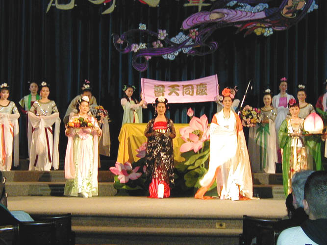 音乐会节目十分丰富多彩,绚丽多彩的乐舞“普天同庆”在观众的阵阵掌声中拉开了演出的帷幕。曾走上天安门广场讲真相的加拿大西人女弟子康妮字正腔圆的一首“法轮大法好”和曾走上天安门广场讲真相的西人弟子们发自内心的一首“为你而来”更是将音乐会推向了高潮。