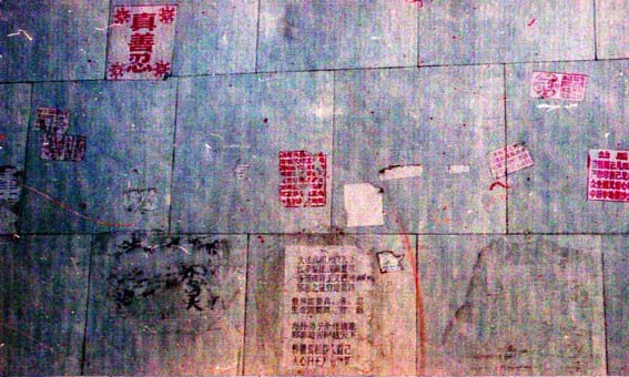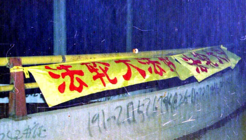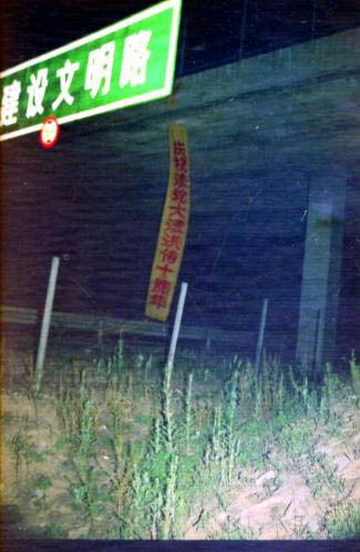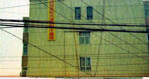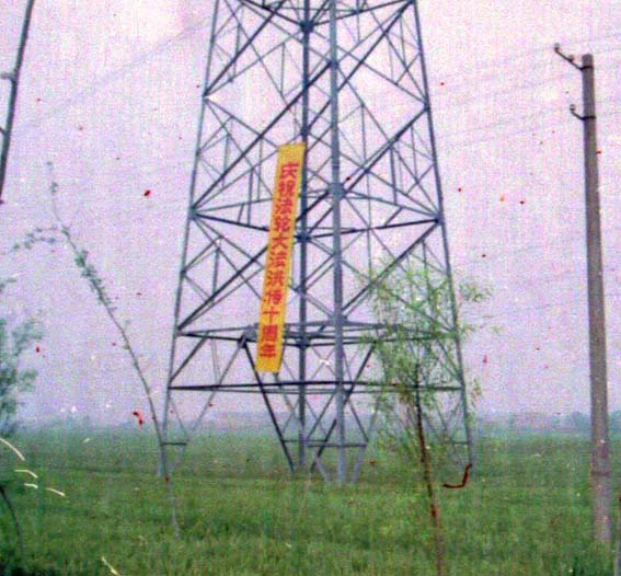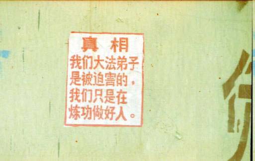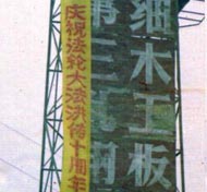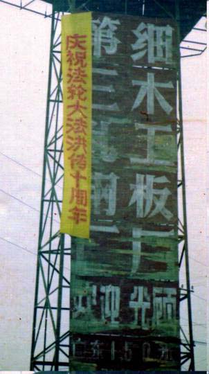 【明慧网2002年5月22日】为庆祝世界法轮大法日、伟大师尊传法十周年,河北某地区大法弟子各显其能,纷纷献礼。一夜之间,市内郊区到处都是大法条幅、不干胶、洪法真相。给邪恶有力的一击,有力地震慑了邪恶。