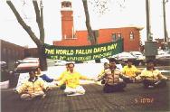 此前,五月四日,爱民顿大法弟子专程驱车十数小时,来到格兰德伯爱瑞市(Grande Prairie)与那里的市民一道共庆“法轮大法月”。常务市长比尔格文(BILL GIVEN)先生到场宣读了褒奖令。在观看过大法展板和学员的功法表演后,他表现出对法轮大法的极大兴趣,欣然接受学员送给他的真相光碟。当地媒体的记者也对大法表示了很大的兴趣。之后,爱民顿学员分头行动,有的前往当地图书馆捐赠大法著作;有的到当地华人餐厅去讲真相和摆放资料;有的往各个主要商场饭店发放资料;有的在原地继续演示五套功法并派发传单。西人弟子回来后高兴地说,“这个小镇的每个角落都有了我们的大法资料。”有缘的格兰德伯爱瑞市市民对大法表现出莫大的支持与兴趣,有的当时就要求学功。我们回到爱城后,仍然有人打来电话,索要教功录像带。