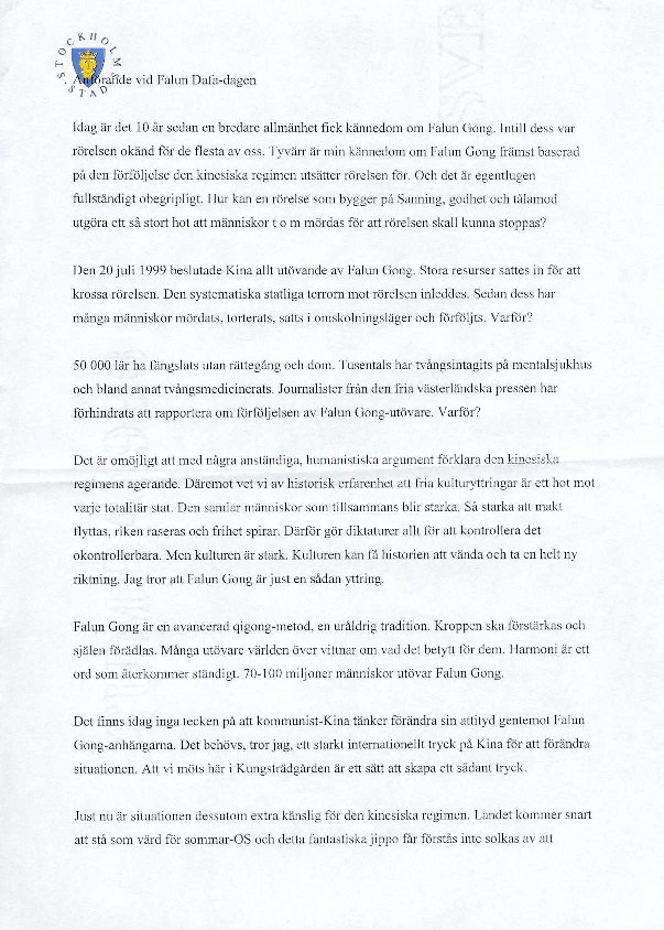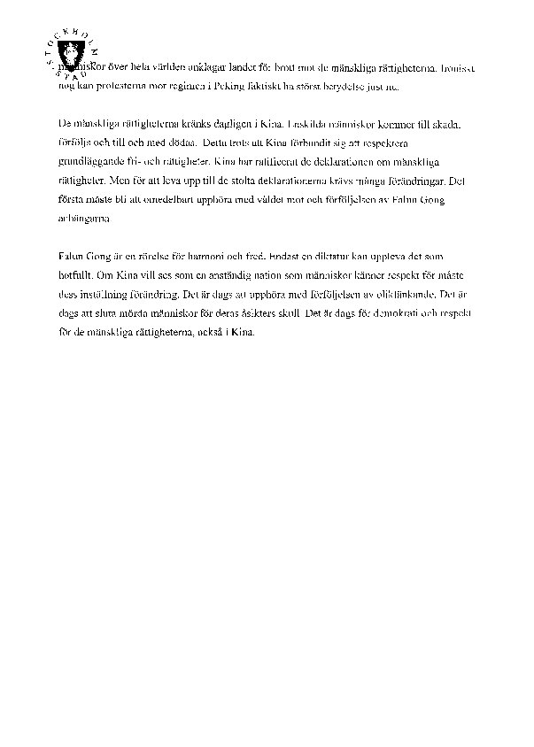 法轮功是一个和祥和平的功法,只有暴君才对其感到威胁。如果中国想要世界视其为尊重人权的文明礼国,那么中国必须改变其对法轮功的态度。现在是停止镇压不同思想和不同信仰者的时候了。现在也是中国实施民主和尊重人权的时候了。