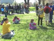5月11日,时值渥太华“郁金香节”,Dows Lake公园的中外游客逾万。渥太华法轮