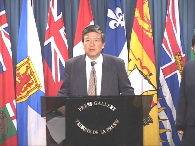 时值丁关根来渥太华,法轮功学员在国会内举行新闻发布会揭露丁关根迫害法轮功