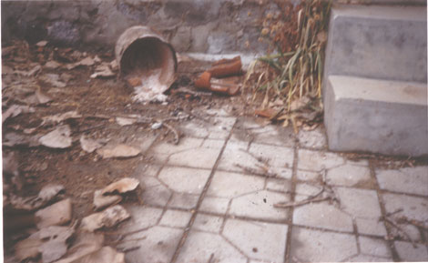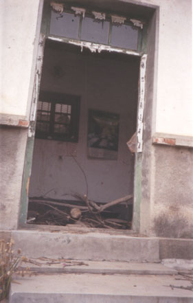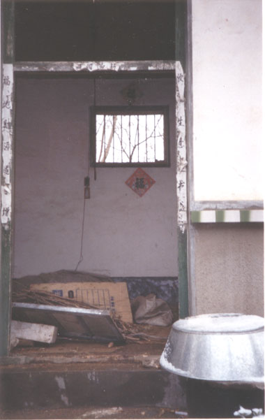 2000年11月份,赵传文因散发真相资料,被邪恶之徒发现,被迫流离失所。摩托车,三轮车又被镇政府的暴徒抢走。当镇政府的暴徒发现赵传文继续参加大法学员的交流会后,又再次闯入赵传文的家中,把他家中仅剩的全部财产抄走,家中的四季衣服,家具,车辆等物品也被邪恶之徒低价拍卖,七间房子的门,窗,大门全部摘走,门窗上的玻璃,面缸,也全被砸碎,把他家中的天花板撬开,更令人悲愤的邪恶之徒竟把赵传文家中大门摘走后,又用石头等把大门口垒上,现在赵传文的家中家徒四壁,一片狼籍。(如图)赵传文的父亲的三头猪被抢走,赵传武家同样也被他们抢劫一空。(如图)