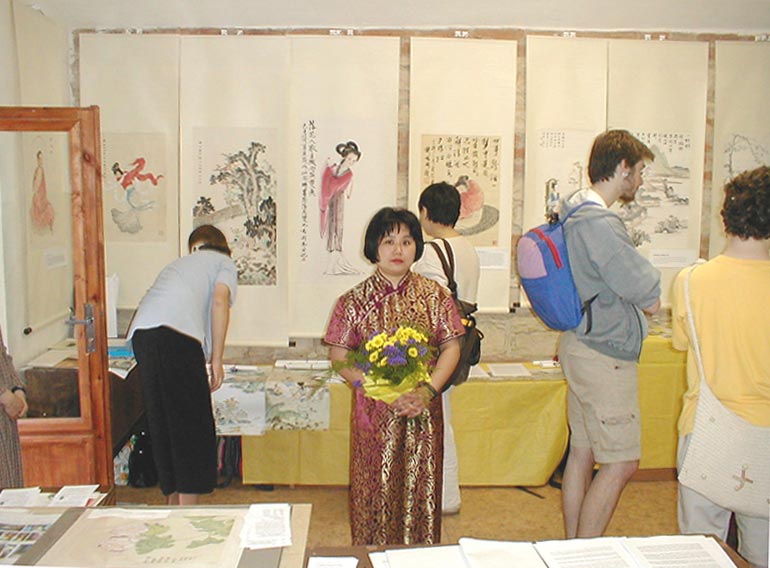 五月二日画展正式在首都布拉格(Prague)开始。在开幕仪式上一位懂得绘画艺术的捷克汉学家发表了演讲,简洁地向参观者介绍了中国国画艺术,高度评价中国传统艺术及章翠英的作品充溢着娟秀、宁静、圆融,“画如其人”,可她却经历了八个月地狱般的牢狱折磨,而这,仅仅因为说句实话─“法轮大法好”。这位捷克汉学家给予画展很大支持。艺术无国界,在有浓郁的文化氛围的布拉格,参观者对章女士的画作深为赞赏,不少当地人向画家献鲜花、赠送当地的艺术品以表示敬意和感谢。
