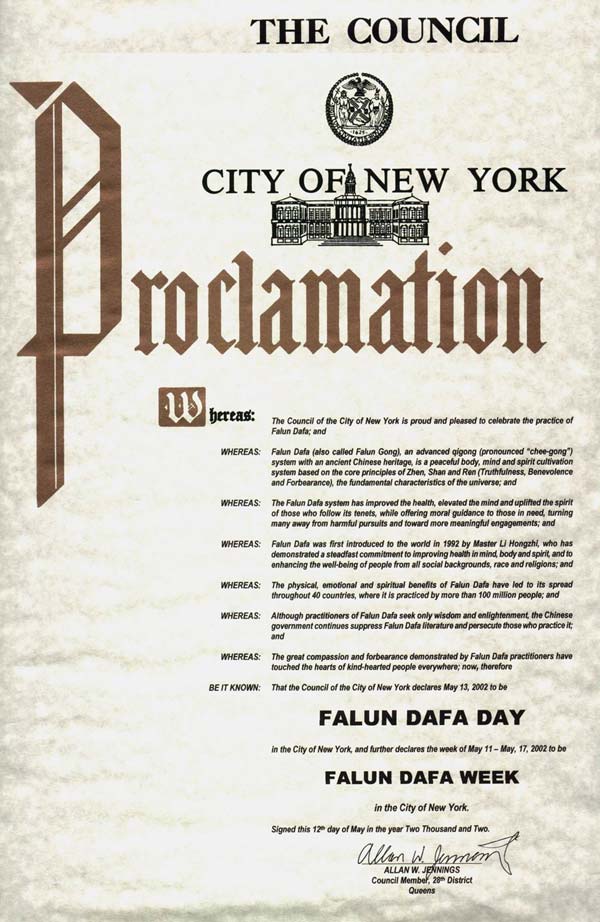法轮大法修炼者们所表现出的大善大忍已感动了全世界善良的人民;鉴此