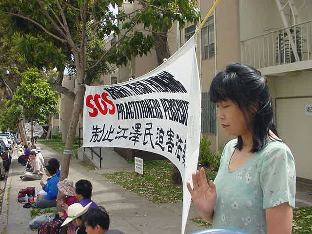 她说,为此,2002年4月3日,近五十名法轮功学员作为直接受害者向华盛顿特区联邦法院以民事诉讼程序控告中国江泽民政府控制的中国驻美国大使馆及中央电视台在美散布针对法轮功学员的谎言与仇恨。