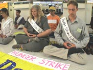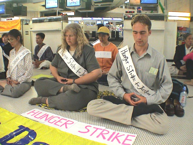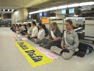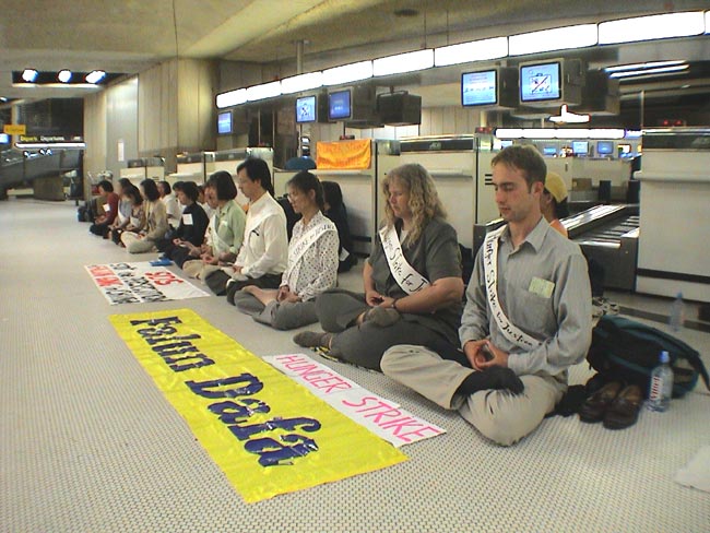 在及时调整并更好地摆正讲真相和发正念的关系的同时,在坚持静心学法、继续集中力量加大密度发正念的同时,当时学员们发现自己被置身于一个可贵的正法机缘之中——冰岛政府在江泽民流氓政府压力下采取的无理行动,使来自世界各地的各族裔法轮功学员滞留在世界各地的主要机场和城市。这是一个全世界正义力量一致抗议邪恶江泽民的迫害、让人们从当事各国法轮功学员言行中直接了解法轮功真相的特殊历史时刻。