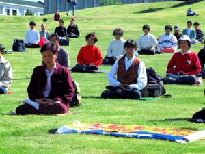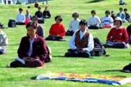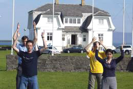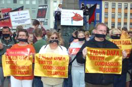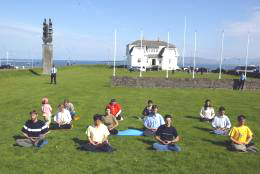 法轮功学员在冰岛国会山前炼功、发正念。
