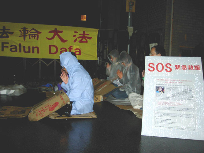 华府学员中使馆前一百小时连续发正念(二)──雨中彻夜学法发正念