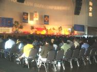 上午时分,大会宣读了师父的贺信和写给法会的诗。我们在法会上反复学习了师父的新经文。在发言的间隙,组织了集体密集发正念。