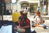 路人纷纷停下观看我们炼功、提问并且索取资料。