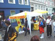 6月15、16日(星期六、日)是塔林市6月份的夏季集市日,市政厅广场大小摊档林立,沿广场一周的所有餐厅、酒吧前的太阳伞下到处是人群,甚至周边国家的人也涌向这里,热闹非凡。大法弟子在向市场经理洪法之后,经理爽快地同意免费让我们全天在广场舞台上进行功法示范表演,及发真相材料。
