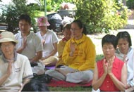 | 早晨集体炼功 | 交流期间不忘发正念 | 讲清真相心得报告 |