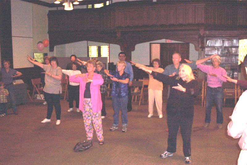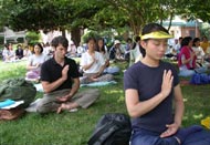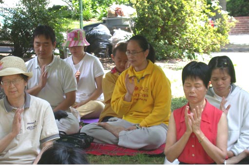 在休息十分钟后,学员向前来参加当天活动的当地市民教授了法轮功功法。来自当地的20多名各族裔居民认真学炼了全部五套法轮功功法,并同法轮功学员亲切座谈交流。许多人纷纷购买法轮功书籍和录像教功带,并留下联系电话,希望以后能多参加法轮功的炼功活动。