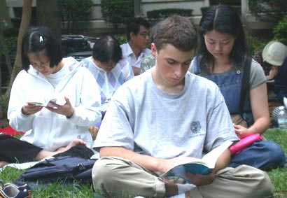有两位女士,两天来不仅跟着大法弟子学炼法轮功,并开始从明慧网上下载《转法轮》,她们明显感受到法轮功强大的能量场,并表示以后会告诉更多的人们学炼法轮功。她们还热情邀请大法弟子到自己家里作客。