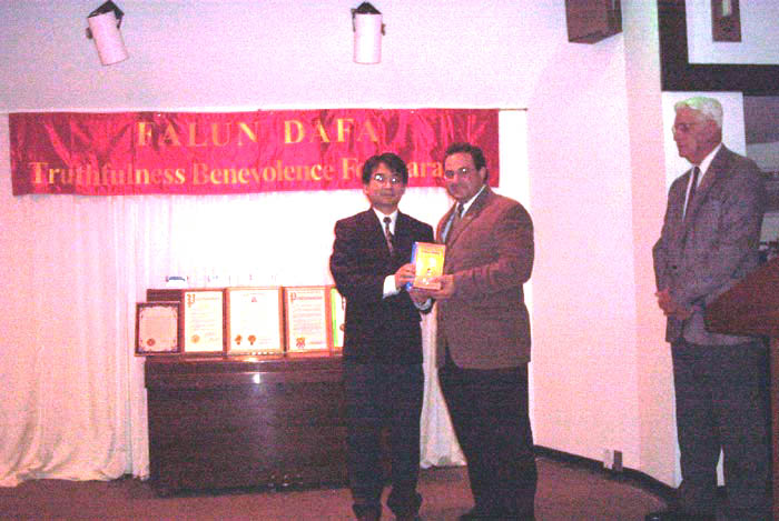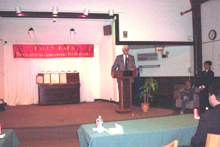 在庆典仪式上,大家还共同观看了介绍法轮大法的录像片,学员并向来宾赠送了法轮大法录像带及法轮大法书籍。
