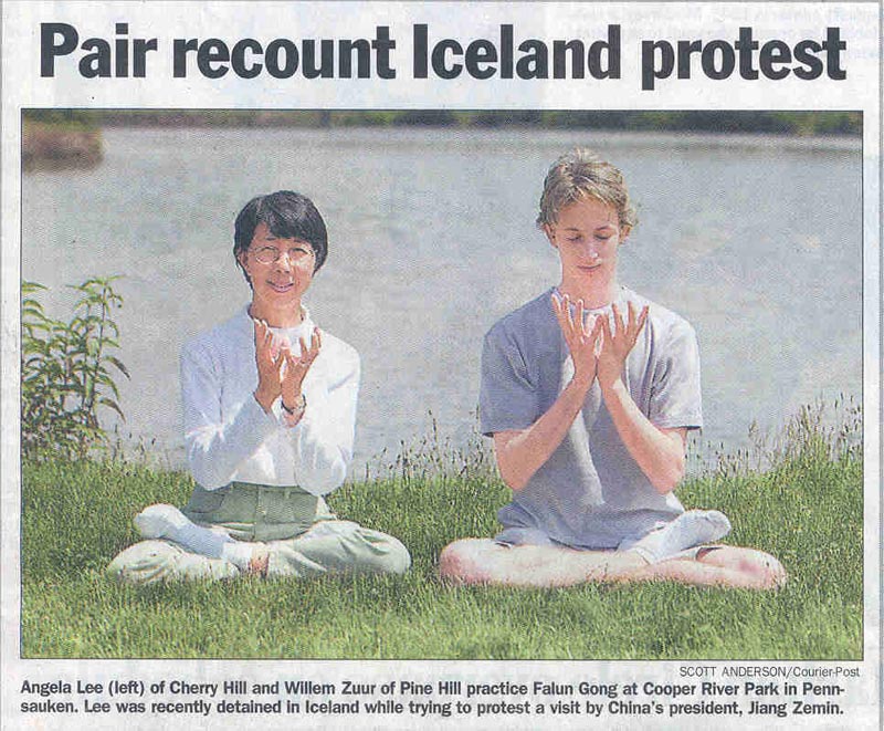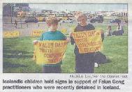 法新社6月15日报导,由于法轮功和冰岛民众的抗议活动,中国国家主席江泽民不得不改变日程安排。星期五晚冰岛总统为江氏夫妇举行官方晚宴,江在宴会进行到一半儿时从座位上站起来唱歌,此举令所有出席宴会的人们感到诧异。