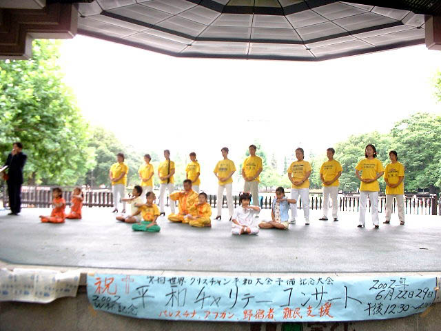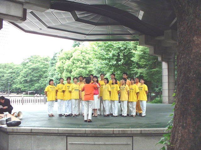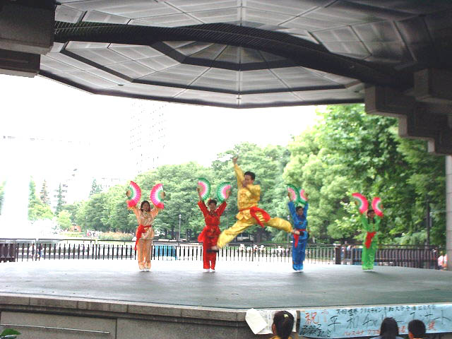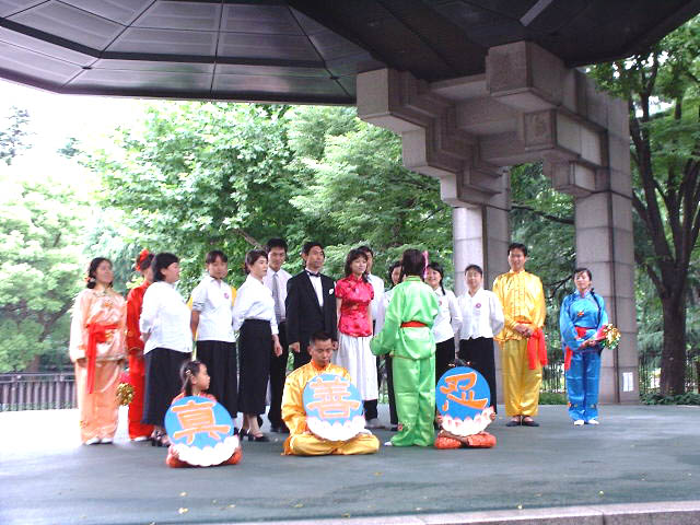 学员们表演了“法轮大法好”,“法正乾坤”等歌舞,展示了法轮功的五套功法,并且表演了中国的民族舞蹈。一位日本学员表演了自己创作的舞蹈,甚为感人。整场演出获得了在场观众的好评。两位德国游客兴致勃勃地拍摄了功法表演场面,当学员将英文大法资料送给他们时,他们连连说,在德国就看过了大法介绍,当最后“法正乾坤”演完后,在观众要求下,又演唱一遍才结束。