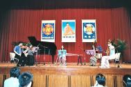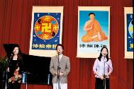 | 学员演唱「登归途」、「如梦令 得度」等歌曲 | 合唱团演唱「法轮大法好」、「谢师恩」等歌曲 |