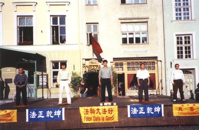 在6月22日的台湾心会会议上,台湾学员应吕副总统之邀,向150多位专家学者表演功法,有人立即在台下跟着学炼了起来。表演前就有教授们说:今天终于可以看到法轮功的表演了。
