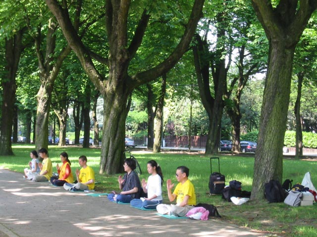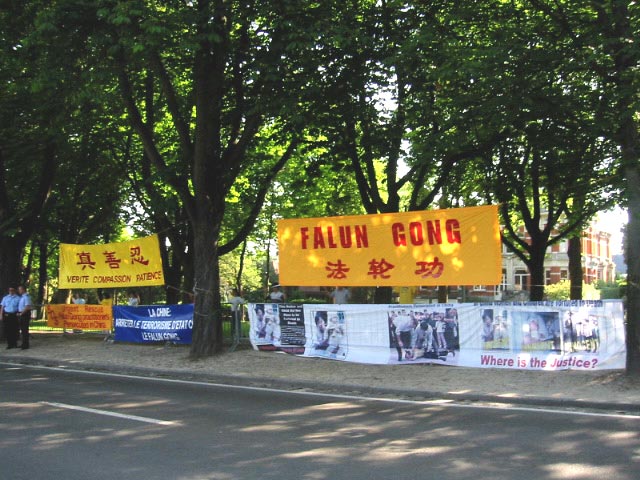 值得一提的是,前来帮助我们维持秩序的一位警察先生, 看到学员们祥和的炼功场面后,非常感兴趣,并向学员索要大法书和录像带。一位比利时女士专程赶来,询问如何能帮助我们,临走还特意留下她的地址,以便联系。