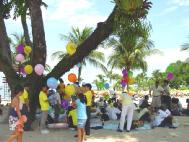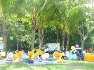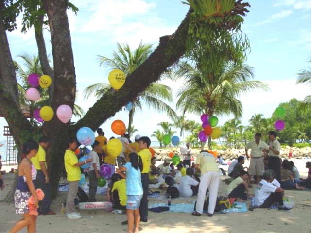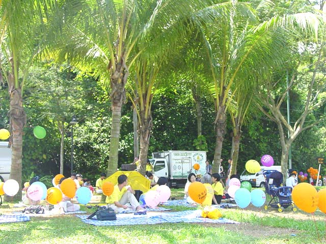 参加野餐的人们读着写在雨伞、气球和我们身着的T恤衫上的字样:“法轮大法”“真善忍”“法轮大法弘传十周年”,孩子们拿着我们分给的气球在人群里跑来跑去,熟人朋友走过来和我们热情地攀谈。在人群中,我们显得是那么的融洽自然。
