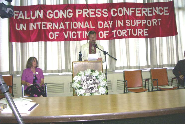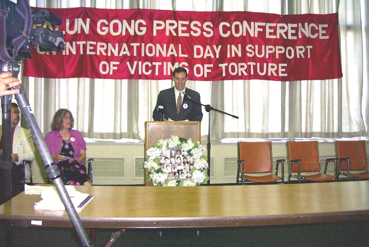 最后发言的是来自堪萨斯州议员办公室的代表宣读议员DENNIS MOORE对此次新闻发布会的支持信。给本次新闻发布会写信支持的还有堪萨斯城市长办公室、密苏里州的国会议员及堪萨斯城第三区女代表MARY WILLIAMS-NEAL。他们在信中都表达了对中国法轮功修炼者受迫害情况的关切以及对中国(江泽民)政府镇压法轮功的不满,并希望中国政府能遵守国际人权条约,尽早停止对法轮功修炼者的迫害。