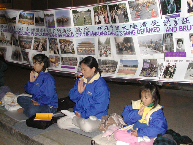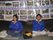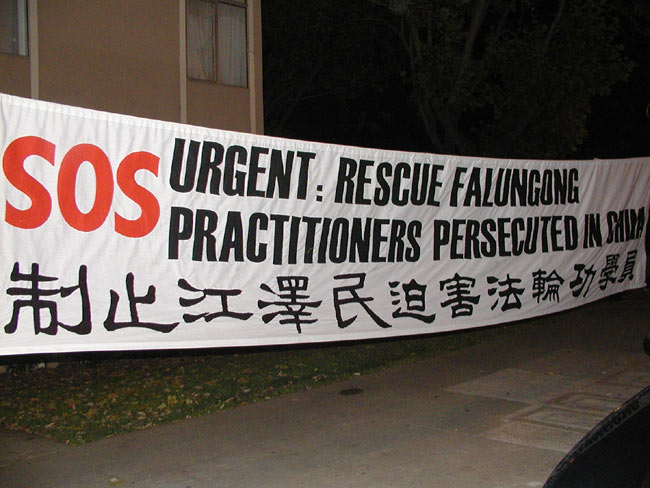 从六月三日开始,旧金山湾区大法弟子在旧金山中领馆前连续集体发正念除恶至今已经连续6天了。初夏的旧金山到了夜晚气温骤降,丝丝寒风直往大法弟子的脖子里钻,不甘灭亡命运的邪恶势力用尽一切方法妄图干扰大法弟子的正念。然而一切干扰在坚定的大法弟子面前都不过是些可笑的伎俩,不但动摇不了大法弟子们的正念,反而让我们更坚定了铲除邪恶、救度众生的决心。