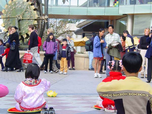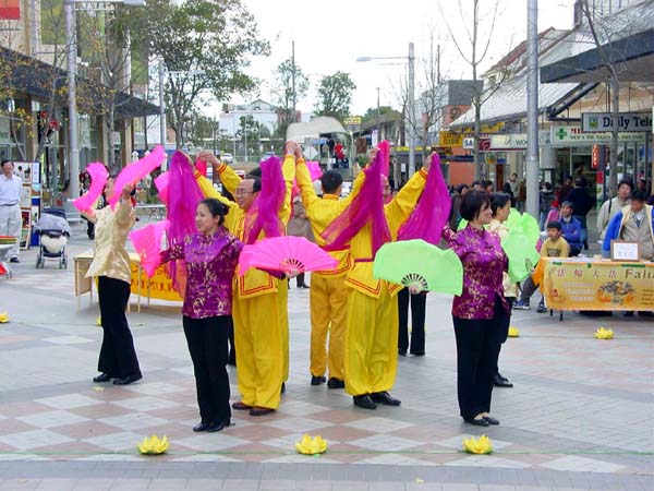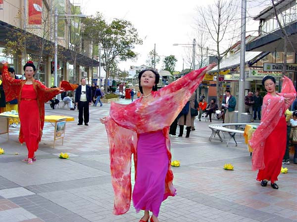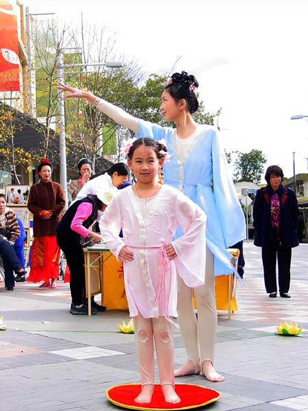 悉尼地区的法轮功学员为这次活动进行了精心的组织和排演,节目内容精彩纷呈。女学员端庄华贵的唐装表演及轻快活泼的扭秧歌;孩子们轻盈飘逸的荷花舞;日本籍学员婉转悠扬的小提琴独奏“普度”、“济世”;学员们宁静、祥和的炼功场面;西方学员真诚感人的修炼体会,这一切使经过的每一个人都感受到了一种慈悲、祥和的纯正之场,许多人甚至主动找到大法学员想要多了解一些关于法轮功的真相。