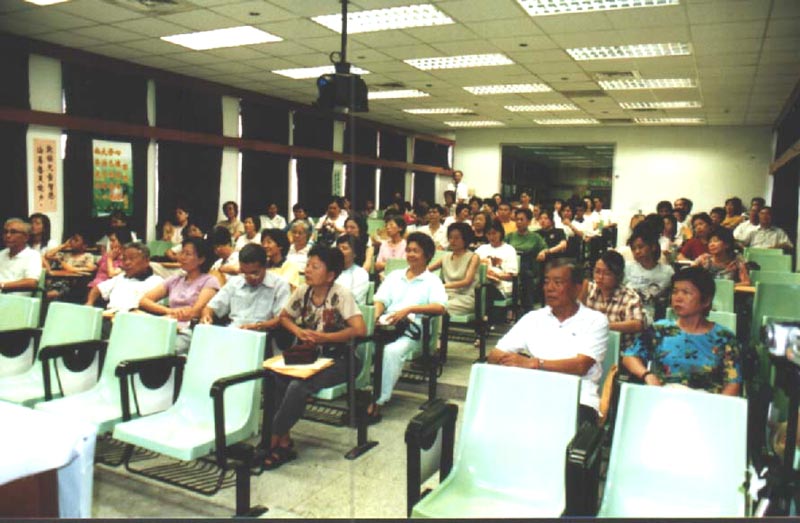 此次研习营参加者非常踊跃,座无虚席,除了教师外尚有眷属和小朋友甚至年长的先生和太太也不少,可见法轮功已深入各个阶层,大家都知道法轮大法好,扶老携幼的来参加了。