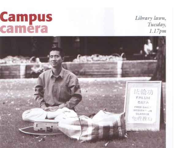 每个工作日的中午,学员们在这里炼习舒缓而优美的功法,有时也吸引了校外的人来这里学功,这已成为校园一条亮丽的风景线。