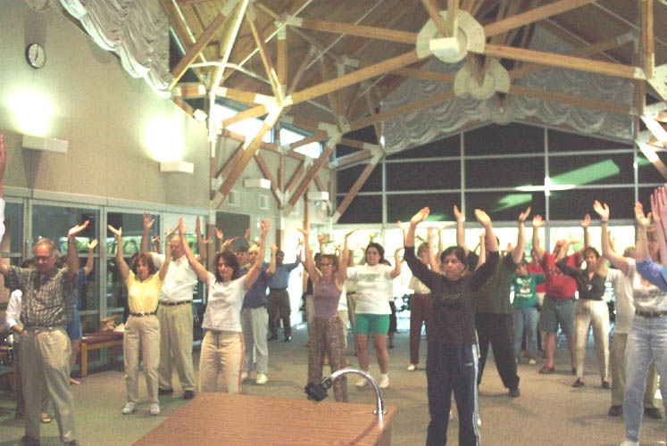 在两个学习班结束前,应参加学习班的市民的要求,当场决定在两市分别成立法轮大法炼功点,每周进行一次集体炼功活动。